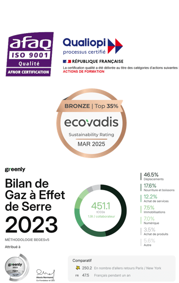 Ecovadis : Evalués depuis 2023, nous avons obtenu en 2025 la note de 61/100, en progression par rapport à l’année précédente, ce qui nous classe désormais parmi le top 35 % des entreprises les plus performantes de notre secteur.